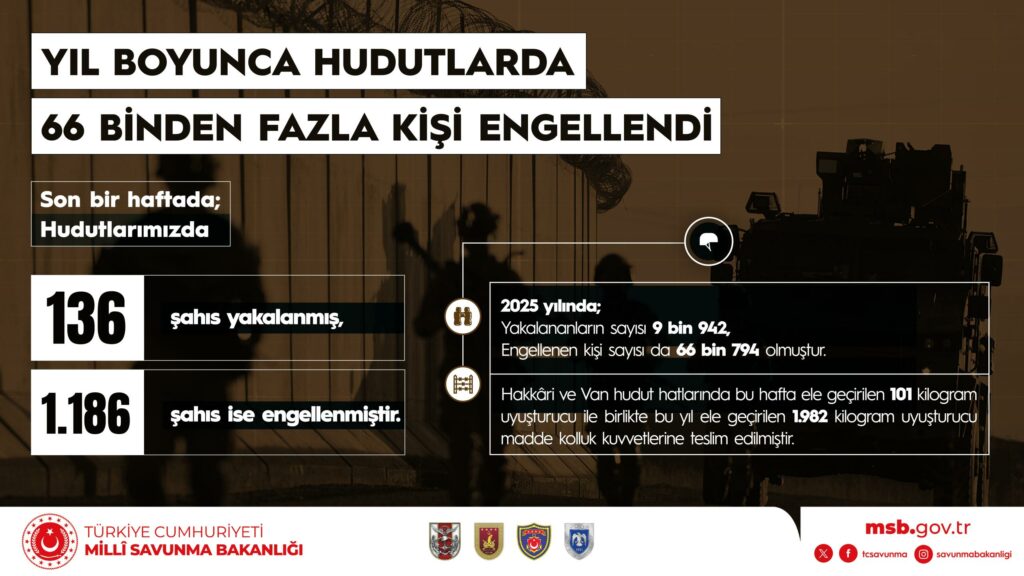 Cumhuriyet tarihimizin en yoğun ve etkin tedbirleri ile korunan hudutlarımızdaki başarı rakamlara da yansımış, 2025 yılında;
