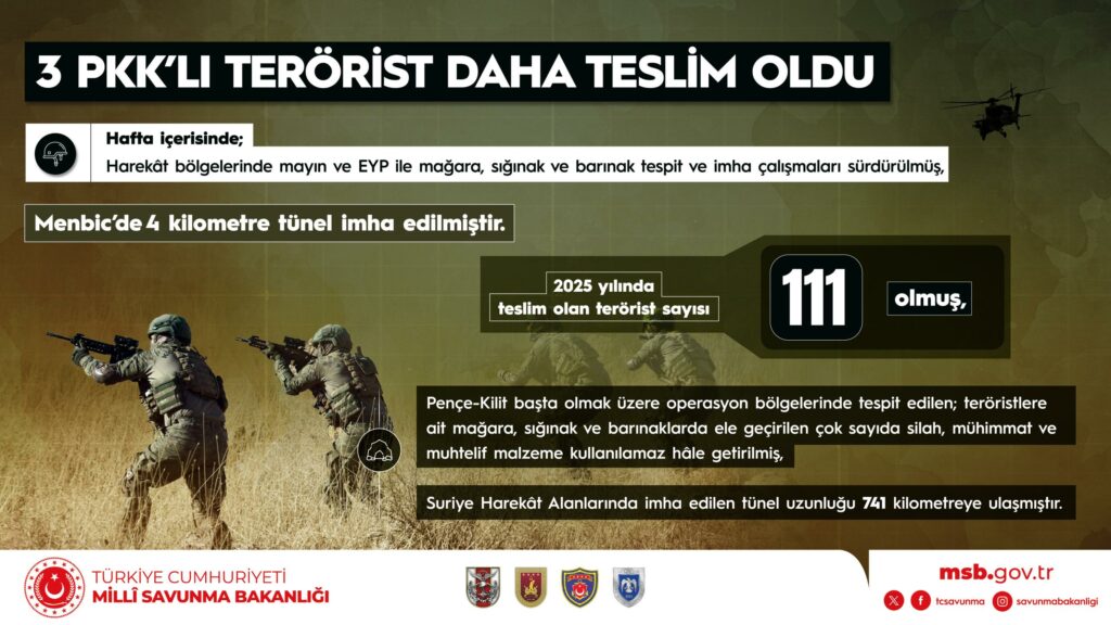 – 3 PKK’lı terörist daha teslim olmuş,