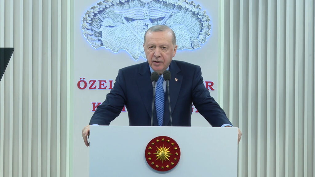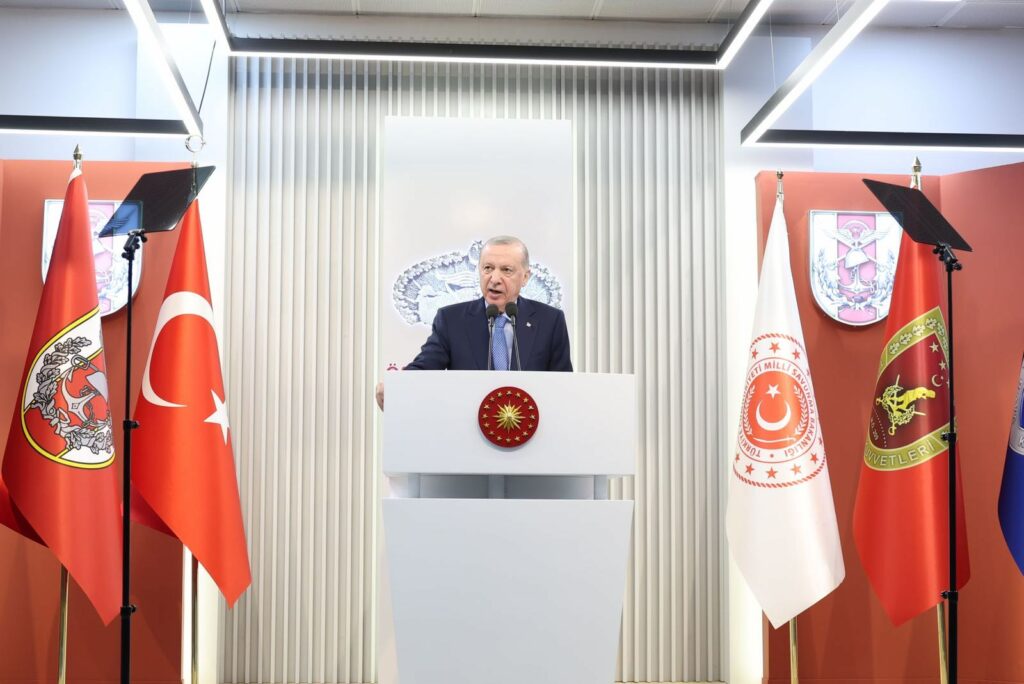 “Değerli arkadaşlar; ecdadımızın asırlarca ey şanlı ordu, ey şanlı asker nidalarıyla yüreklendirdiği kahraman ordumuzu her türlü desteği vererek daha da güçlendirmeye devam ediyoruz. İşte en son geçtiğimiz hafta HAVELSAN’da çok önemli bir açılış töreni gerçekleştirdik. Tamamlandığında Avrupa’nın en büyüğü olacak simülatör üretim ve entegrasyon tesisinin temelini attık. Öncesinde Deniz Kuvvetleri’mizin gücüne güç katacak çeşitli platformların hizmete giriş, bayrak çekme ve sac kesme törenini icra ettik. Savunma ve havacılık ihracatında 2025 yılını 10 milyar doları aştığımız rekor bir rakamla tamamladık. Almanya’da yapılan NATO tatbikatında Silahlı Kuvvetlerimiz yetenekleriyle hem bizi gururlandırdı, hem de müttefiklerimizden büyük takdir topladı. Şayet füze testi yapmayın, balıklar ürküyor diyenlere kulak kabartsaydık elbette bunların hiçbirini başaramazdık.”