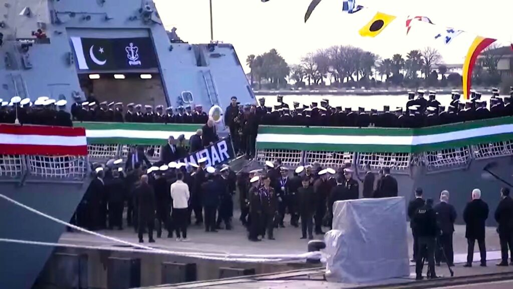 Törende, PNS Khaibar’ın komutanlık sembolü Pakistan Deniz Kuvvetleri Komutanı Ashraf’a teslim edildi.