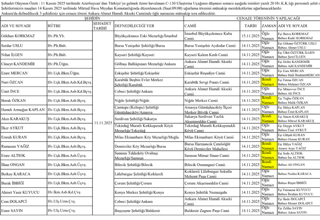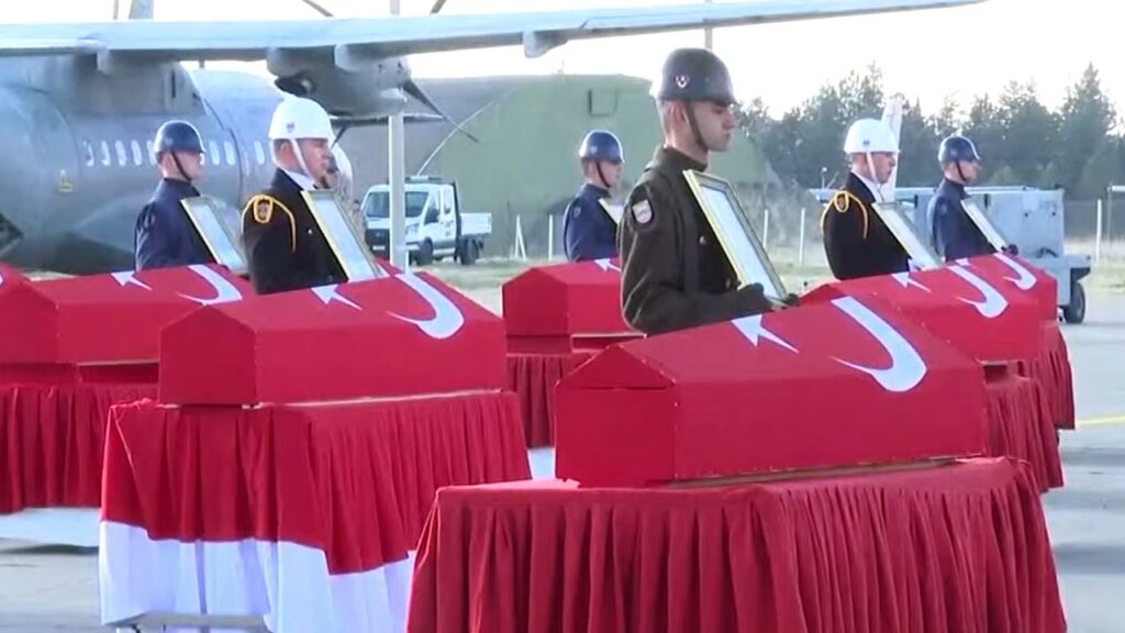 Şehitleri Gürcistan’dan getiren Türk Hava Kuvvetleri Komutanlığı bağlısı A400M uçağı, dün (13 Kasım) akşam saatlerinde Ankara Kazan’daki Mürted Hava Meydan Komutanlığına indi.