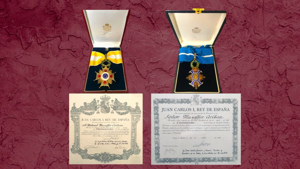 İspanya Kralı Juan Carlos I tarafından Şövalyelik Nişanı olan ve İspanya’nın önde gelen üç liyakat nişanından biri olan “Isabella Katolik Nişanı” ile iki kez onurlandırılan Prof. Dr. Muzaffer Arıkan, Türk-İspanyol ilişkileri konusunda son derece önemli bir isim.