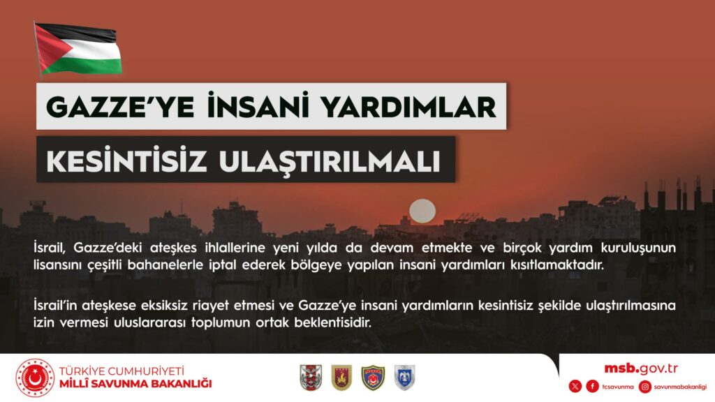 İsrail’in ateşkese eksiksiz riayet etmesi ve Gazze’ye insani yardımların kesintisiz şekilde ulaştırılmasına izin vermesi uluslararası toplumun ortak beklentisidir.