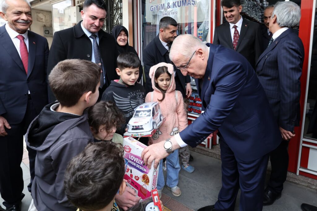 Kilis sokaklarında yürüyerek esnafı da ziyaret eden Millî Savunma Bakanı Yaşar Güler, Kilisli vatandaşlarla sohbet etti, çocuklara hediyeler verdi.