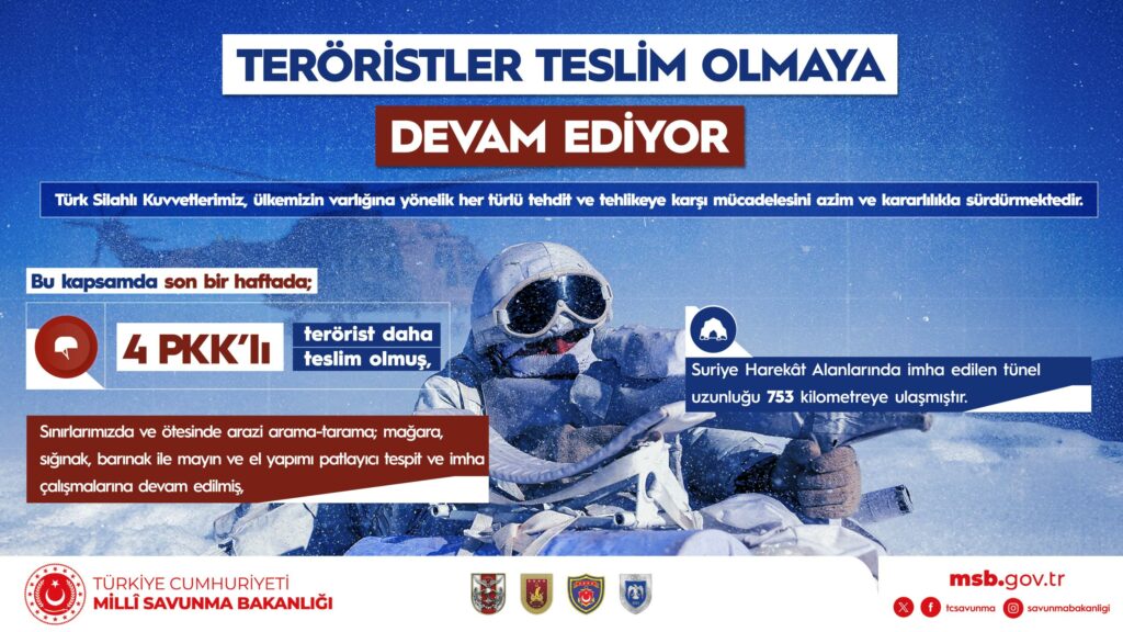 – 4 PKK’lı terörist daha teslim olmuş,