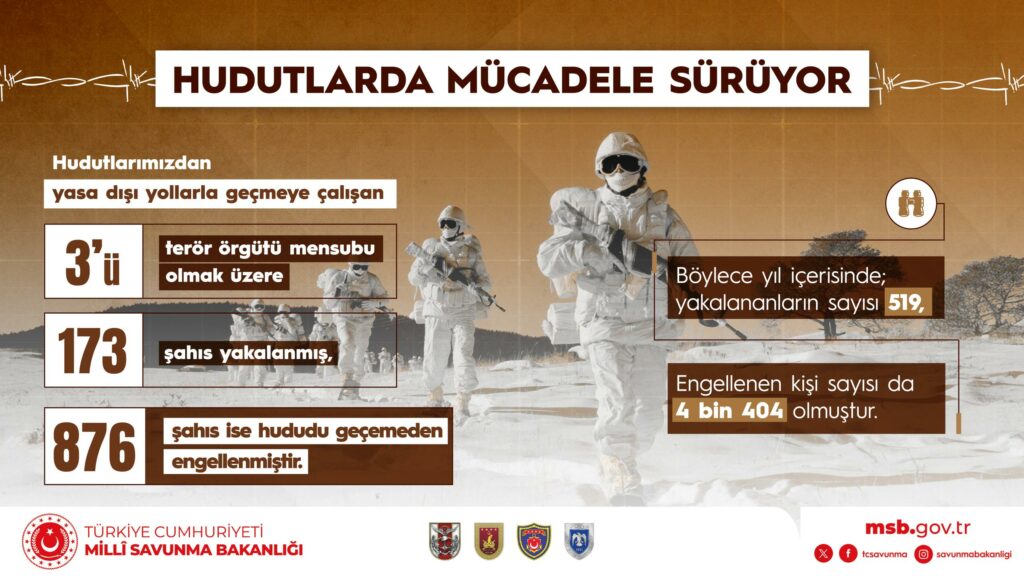 – Böylece, yıl içerisinde sınırlarımızdan yasa dışı yollarla geçmeye çalışırken yakalananların sayısı 519, hududu geçemeden engellenen kişi sayısı da 4 bin 404 olmuştur.