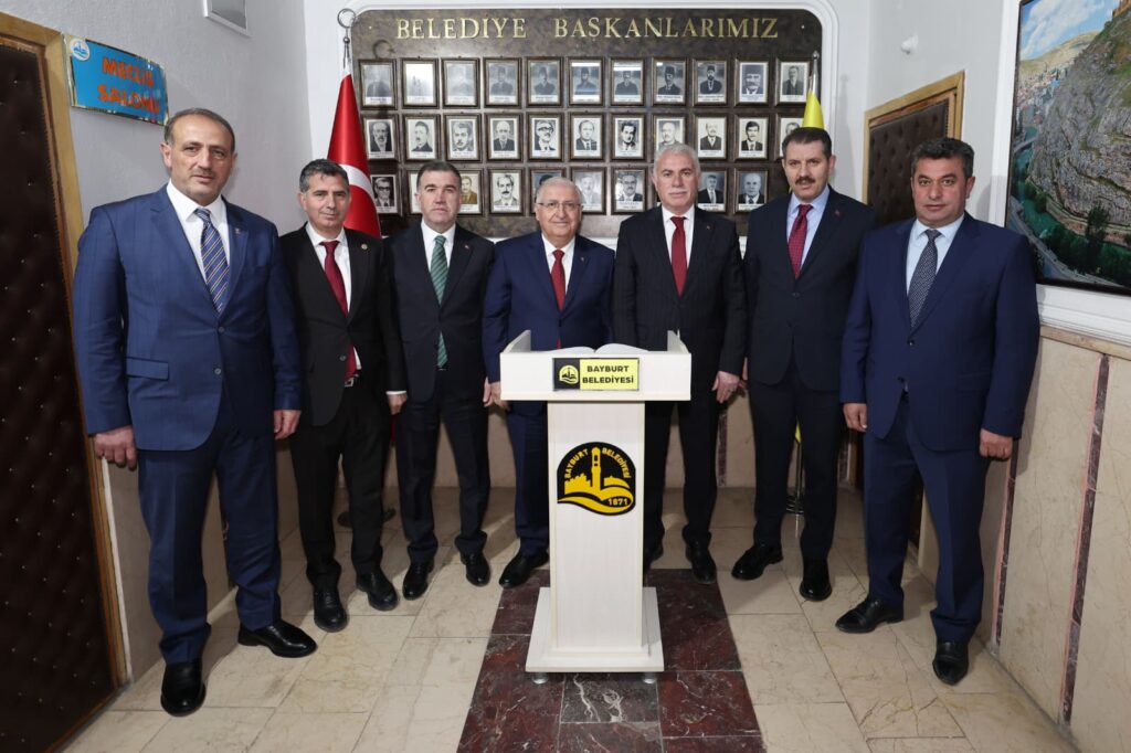 Bayburt Valiliğini ve Bayburt Belediyesini ziyaret ederek kentteki çalışmalara ilişkin bilgi alan Millî Savunma Bakanı’nın beraberinde Bakan Yardımcısı Salih Ayhan da yer aldı.