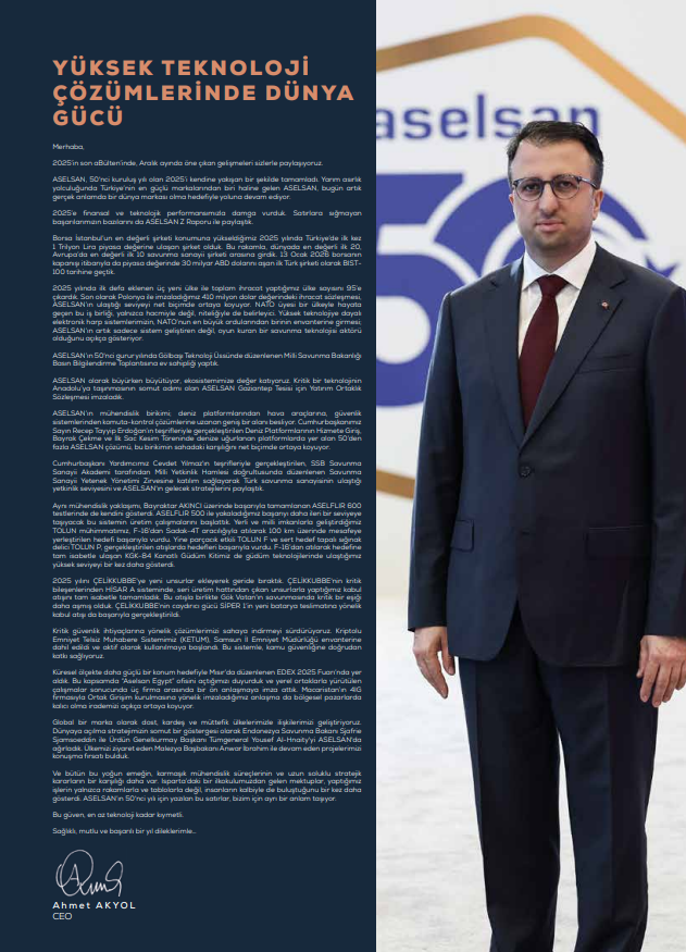 ASELSAN aBÜLTEN’in Ocak 2026 Sayısına Linkten Ulaşabilirsiniz: https://wwwcdn.aselsan.com/api/file/ASELSAN_a-bulten_91_r.pdf